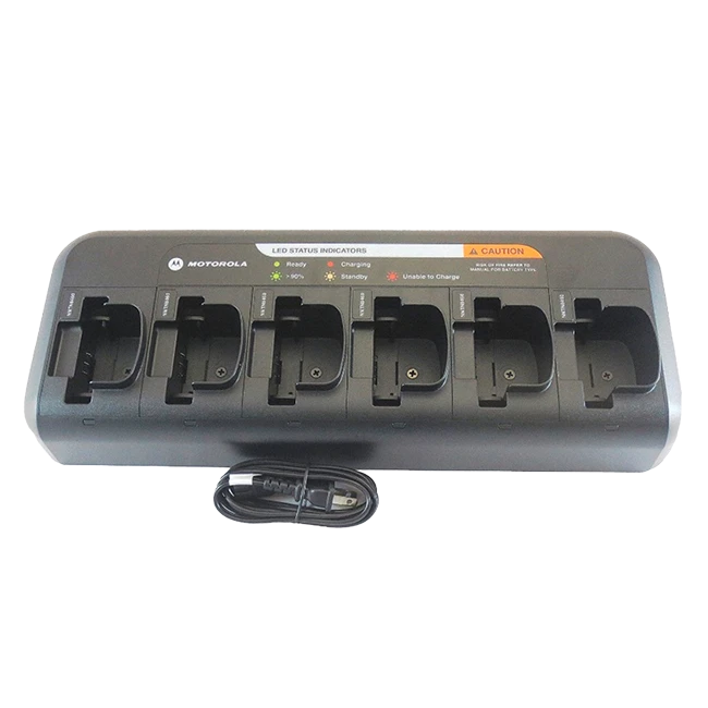 - Carga hasta 6 radios o 6 baterías a la vez